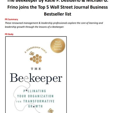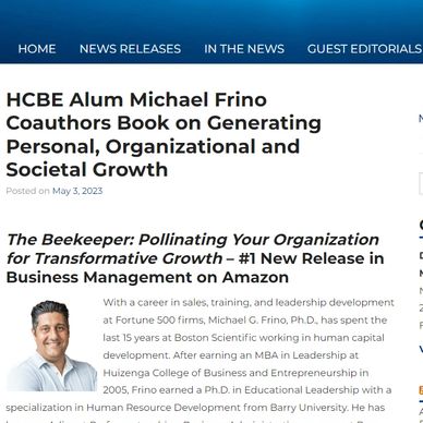 The Beekeeper: Pollinating Your Organization for Transformative Growth is the culmination of years of research by Frino and his colleague, Katie P. Desiderio, Ph.D. .